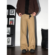 100%纯棉秋冬厚款久穿不坏老钱风全棉水洗斜纹男士直筒宽松休闲裤