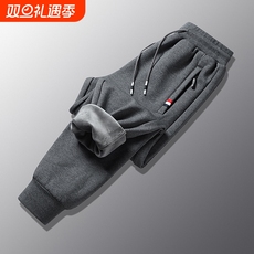罗蒙男士冬季加绒加厚裤子外穿纯棉运动卫裤冬天一体绒直筒休闲裤