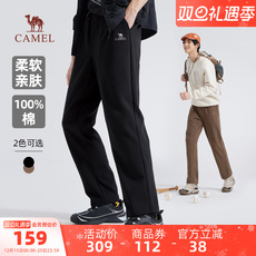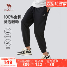骆驼男装休闲针织长裤男士户外新款秋冬纯棉黑色直筒运动裤子宽松