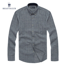 春秋款100%纯棉磨毛格子男士衬衫男长袖宽松口袋休闲商务全棉衬衣