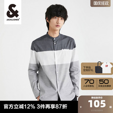 【埃及棉】吉约蒙长袖衬衫男卡其色商务休闲纯棉立领外套潮流衬衣