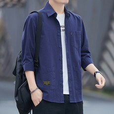 2025新款春秋男士长袖衬衫立领纯棉商务休闲衬衣时尚男装薄上衣服
