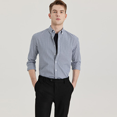 【100棉!成衣水洗】春季男士纯棉格子衬衫长袖商务休闲百搭衬衣