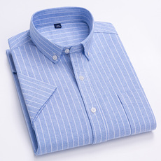 夏季新款纯棉条纹短袖衬衫男士休闲半截袖衬衣全棉商务竖条纹寸衫