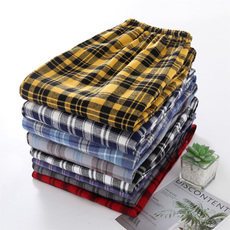 睡裤男夏季薄款纯棉棉布春秋全棉简约休闲格子家居裤宽松直筒长裤
