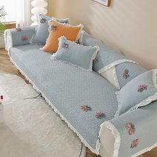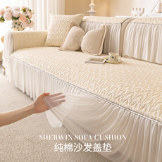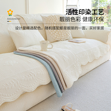 纯色全棉沙发垫法式蕾丝防滑纯棉四季通用布艺沙发套罩巾坐垫子