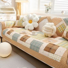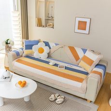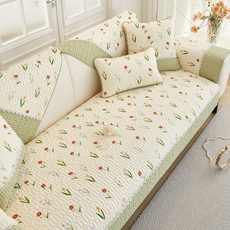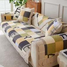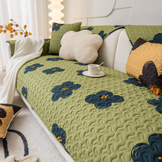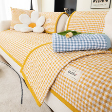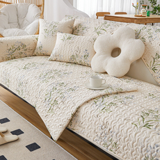 全棉绗缝沙发垫坐垫子防滑布艺加厚田园四季通用纯棉皮沙发巾罩套