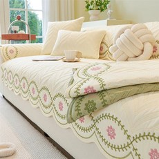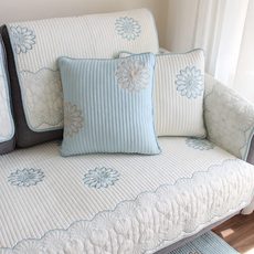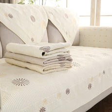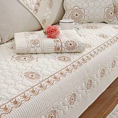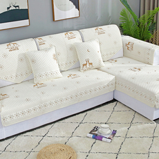 四季米纯棉布艺绣花绗缝套罩夏季防滑高档白全棉垫子现代简约沙发