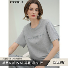 COCOBELLA立体字母刺绣短袖T恤女灰色圆领休闲纯棉上衣TS900