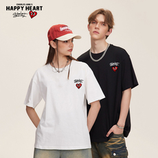 查尔斯桃心 短袖T恤男2025新款夏季美式重磅纯棉字母印花刺绣男女