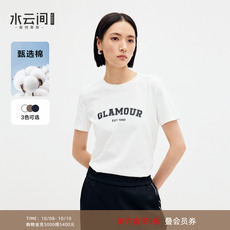 对的英文~深圳南油高端女装M1经典基础款纯棉字母贴布短袖T恤上衣