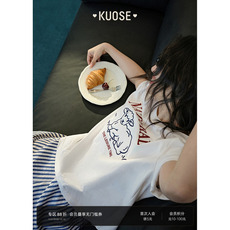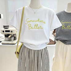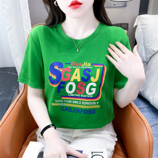 时尚字母印花纯棉短袖T恤女夏季新款宽松休闲遮肚子显瘦圆领上衣