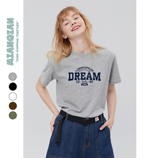 棉牵美式复古灰色正肩短袖t恤女显瘦夏季字母上衣纯棉半袖夏衣服