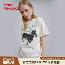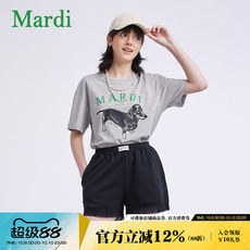 MARDI官方正品经典腊肠狗字母印花短袖修身显瘦圆领纯棉t恤上衣女