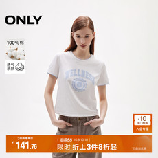 ONLY2025夏季新款休闲百搭纯棉字母直身圆领短袖T恤女|125101001