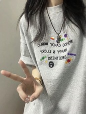 100%纯棉美式复古高街风字母印花夏季T恤短袖女百搭潮牌上衣ins潮
