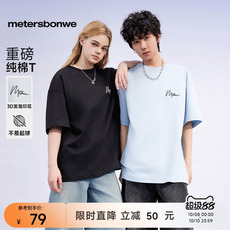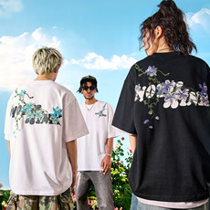 260g美式重磅纯棉短袖t恤男女秋季潮流字母印花宽松大码五分半袖