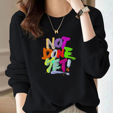 即墨纯棉圆领卫衣女春秋新款宽松显瘦百搭体恤印花薄款长袖上衣潮