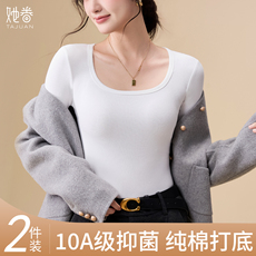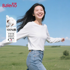 蕉下秋冬新品女士修身长袖T恤显瘦圆领短款纯棉打底衫小白T