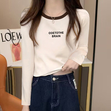 秋冬季正肩短款长袖t恤女纯棉2025年新款上衣打底衫内搭时尚洋气