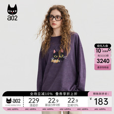 a02黑猫系列纯棉宽松圆领长袖T恤女2025新款秋季甜美风打底衫上衣