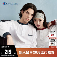 Champion冠军长袖T恤女25秋季新款情侣拼色圆领打底衫纯棉上衣男