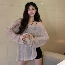 t恤女长袖百搭纯色防晒休闲宽松显瘦中长款上衣夏季新款韩版女装
