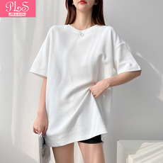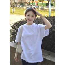 夏季新款纯白宽松大码女装圆领短袖T恤中长款纯色简约字母上衣