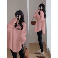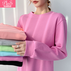 纯色长袖T恤女秋冬中长款宽松大码遮屁股上衣加绒加厚圆领卫衣