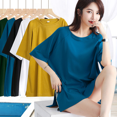 夏季新款圆领纯白宽松短袖体恤打底中长款连衣裙休闲女装纯色T恤