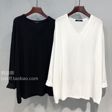 胖妹妹大码200斤宽松慵懒中长款大版纯色长袖T恤女秋简约显瘦上衣