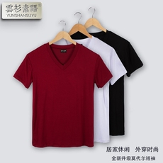 男士莫代尔居家短袖t恤青年纯色v领宽松打底衫薄款运动半袖汗衫夏