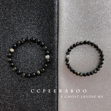 黑曜石手串女款真品纯银男士箴言转运珠手链礼物