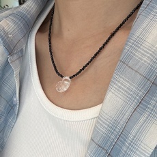 锦河畔 925纯银不规则黑晶尖蜗牛壳水晶项链女简约时尚个性锁骨