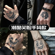 潮酷笑脸手背款草本纹身贴防水男女持久高级感果汁贴胸口锁骨花臂
