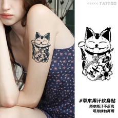 福禄招财猫草本纹身贴防水持久新款个性男女同款手臂帅气仿真刺青