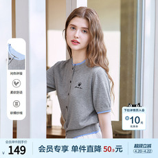 betu百图拼色提花针织衫女短袖2026年夏季新款polo领小衫毛线衣