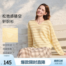 betu百图浅黄色减龄显瘦镂空针织衫女2026年春季新款V领毛线衣