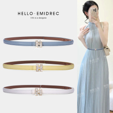 EZEH女士真皮细腰带装饰2025新款牛仔裤百搭纯牛皮橘色小皮带女