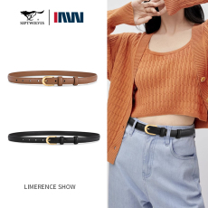 法努百搭老钱风 真皮细腰带女士头层牛皮黑色皮带通勤棕色裤带