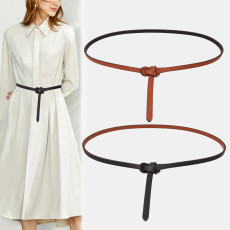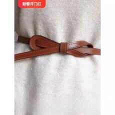 真皮细腰带女黑色白色小皮带打结装饰配连衣裙子腰链夏季2025新款