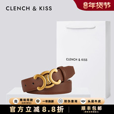 官网Clench Kiss真皮细腰带女小众百搭新款女士皮带女装饰配牛仔
