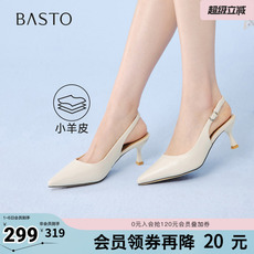 RAIZO 手工高跟鞋女细跟后空尖头凉鞋舒适真皮底不累脚 女浅口