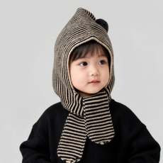 帽子围巾一体儿童秋冬季保暖防风条纹男女童针织毛线宝宝护耳帽