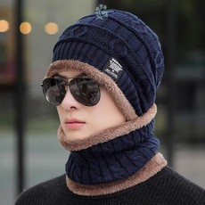 保暖护耳帽男士加绒帽子围脖冬季中老年人防寒套头帽加厚针织毛线