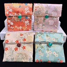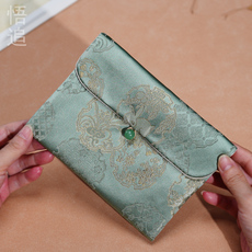 织锦缎刺绣首饰袋盘扣方形双层加厚手镯包手串文玩防尘布袋翻盖包
