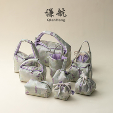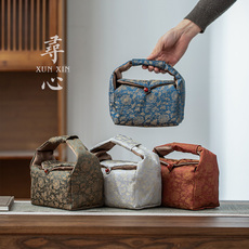 谦航织锦茶具水壶收纳袋大小号布艺云锦高颜值旅行包加厚束口布袋
