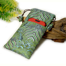 织锦缎手机布袋子加厚加绒智能手机包竖款丝绸布艺零钱包便携通用