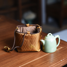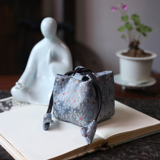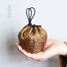 悟追织锦茶杯收纳袋旅行茶具布艺加厚便携布包束口茶叶罐茶壶布袋