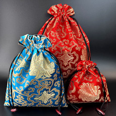 红色龙纹织锦缎饰品袋收纳袋珠宝首饰袋锦囊小布袋香囊空袋11*14